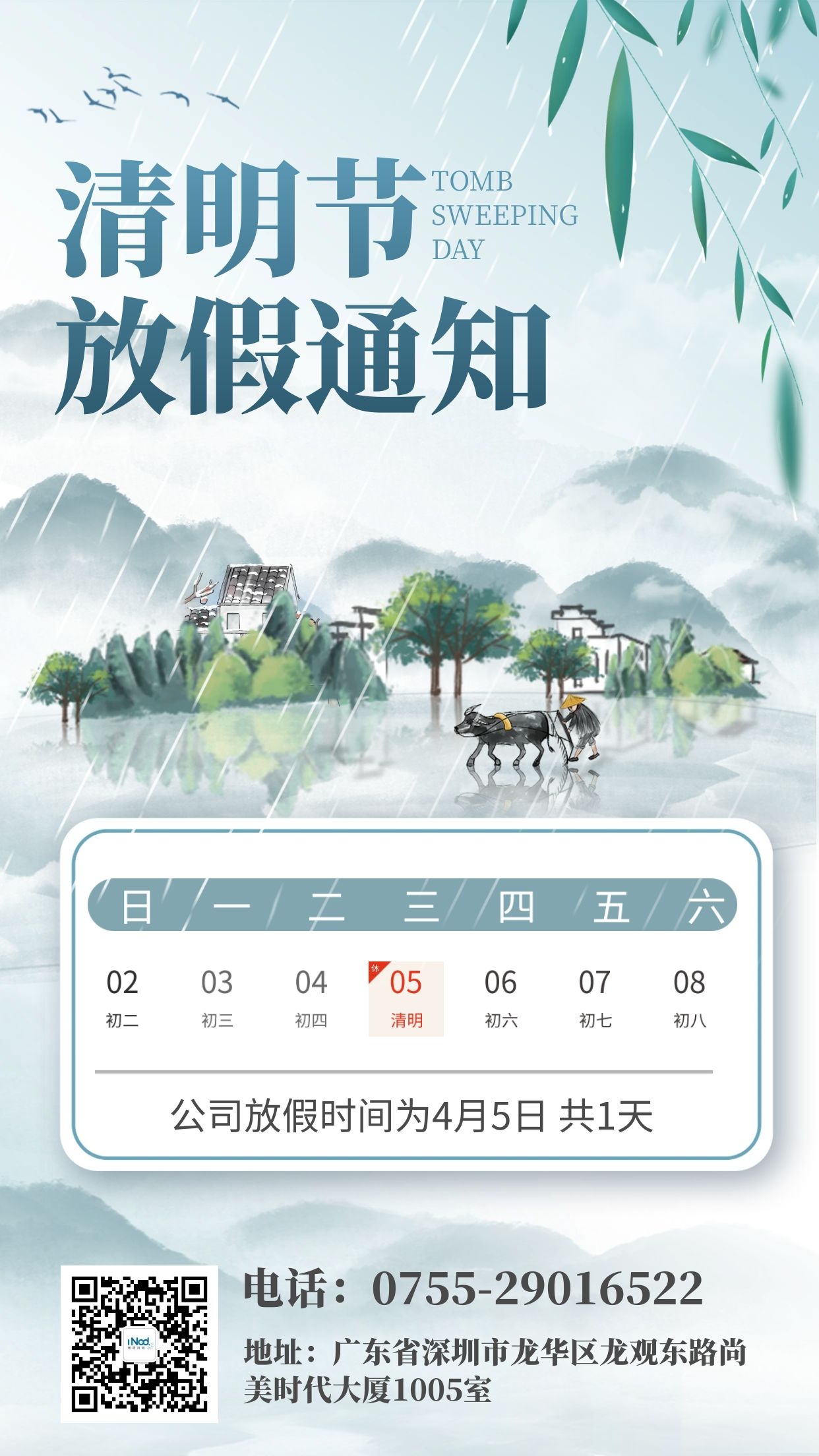 2023年4月5日(星期三)放假一天
