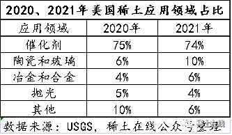 消費量9300噸,較2021年6100噸有53%增長,2021年稀土應用領(lǐng)域如下表所示(未披露2022年數(shù)據(jù))。