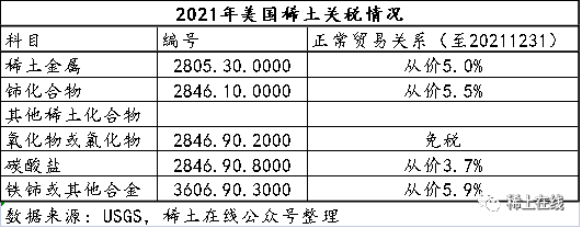 進口化合物11000噸,增加43%,進口金屬合計940噸。進口稀土化合物及金屬估算值為2.0億美元,比2020年的1.6億美元大幅增加25%。(大量稀土作為永磁體用在制成品中進口,未計算在內(nèi))