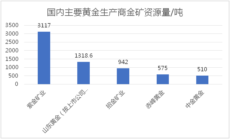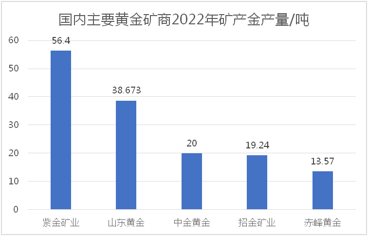 從儲(chǔ)量上來(lái)看,截至2022年末,紫金礦業(yè)目前持有金礦資源量3117噸,約占中國(guó)儲(chǔ)量的40%;山東黃金集團(tuán)公司擁有黃金資源量?jī)?chǔ)量超過(guò)2650噸(上市公司權(quán)益資源量約1318.6噸),按2021年數(shù)據(jù)顯示,招金礦業(yè)擁有權(quán)益黃金資源量為942噸,中金黃金權(quán)益資源量約510噸,截止2022年半年報(bào),赤峰黃金保有黃金資源量為575噸。