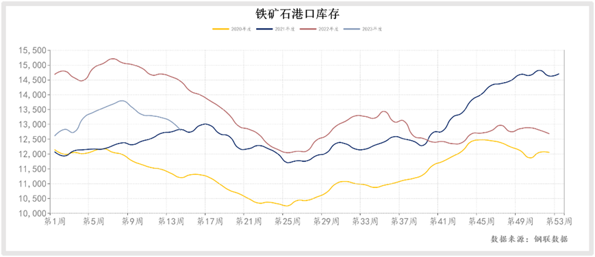 據(jù)mysteel數(shù)據(jù),4月初的一周,其統(tǒng)計(jì)的247家鋼廠高爐產(chǎn)能利用率91.2%,日均鐵水產(chǎn)量245.07萬噸,距離近五年的最高點(diǎn),即2020年8月份的253.3萬噸,只相差8.23萬噸。目前鋼廠鐵礦石總庫(kù)存與庫(kù)銷比維持低位,45港口鐵礦石庫(kù)存去庫(kù)308萬噸至1.32億噸。