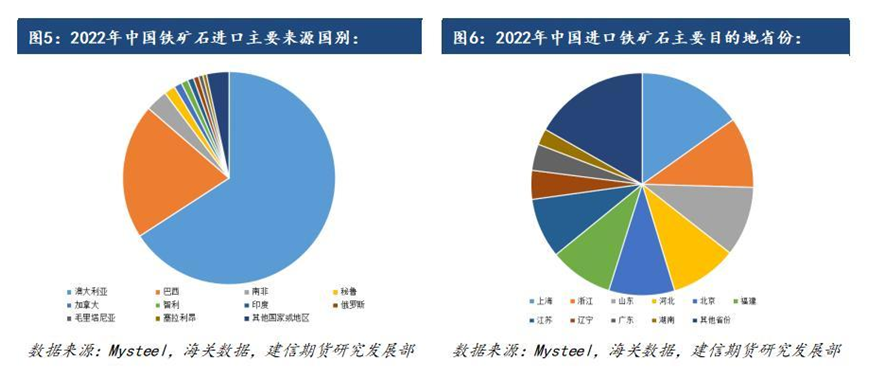 近年來(lái),我國(guó)進(jìn)口塊礦和已燒結(jié)的鐵礦砂及其精礦占比整體呈現(xiàn)波動(dòng)向下的趨勢(shì);而鐵精粉的占比變化正好與塊礦和已燒結(jié)的鐵礦砂及其精礦相反,近年來(lái)鐵精粉占比除個(gè)別年份外,整體上逐步上升。