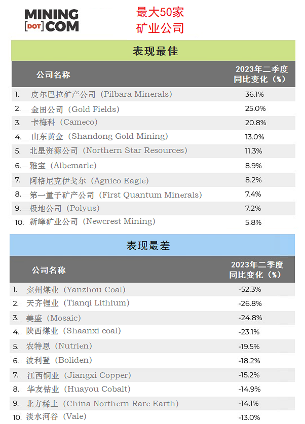 皮爾巴拉礦產公司是二季度表現(xiàn)最佳礦企,使得前50位中來自西澳的企業(yè)達到5家,超過加拿大不列顛哥倫比亞省的溫哥華而躍居首位。