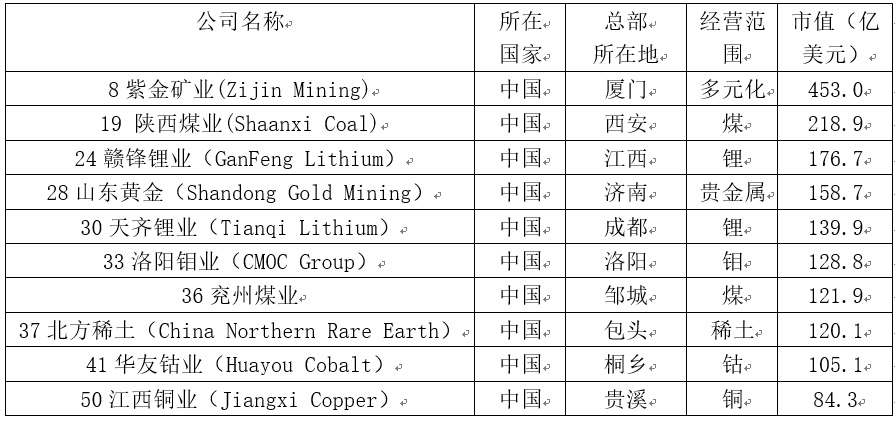 目前,50大礦企市值合計為1.38萬億美元,回落到2021年6月底的水平。