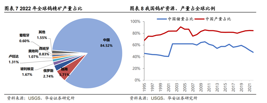全球鎢礦資源較豐富,但成礦相對集中,鎢礦儲量和產量集中在少數國家。