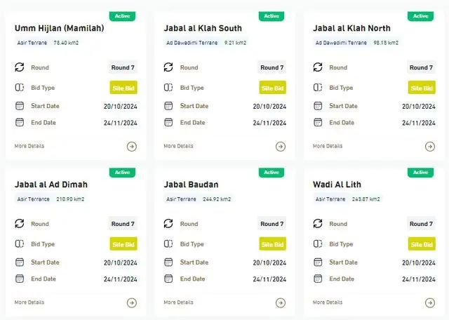 在利雅得地區,另外三個礦區也開放勘探,分別是占地98平方公里的賈巴爾阿爾胡拉(北區),擁有鋅、銀和鉛礦藏;19平方公里的賈巴爾阿爾胡拉(南區),含有鋅、鉛和銀;以及171平方公里的賈巴爾薩卜哈礦區,富含銀、鉛、鋅和鈷礦藏。