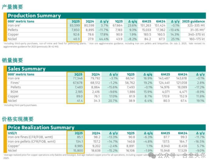 當地時間22日,總部位于巴西里約熱內盧的礦業巨頭淡水河谷發布2025年第二季度產銷量報告稱,報告指出,鐵礦石業務方面,新資產逐步增產,運營可靠性不斷提升,這些將支持公司更順利地完成2025年生產計劃。