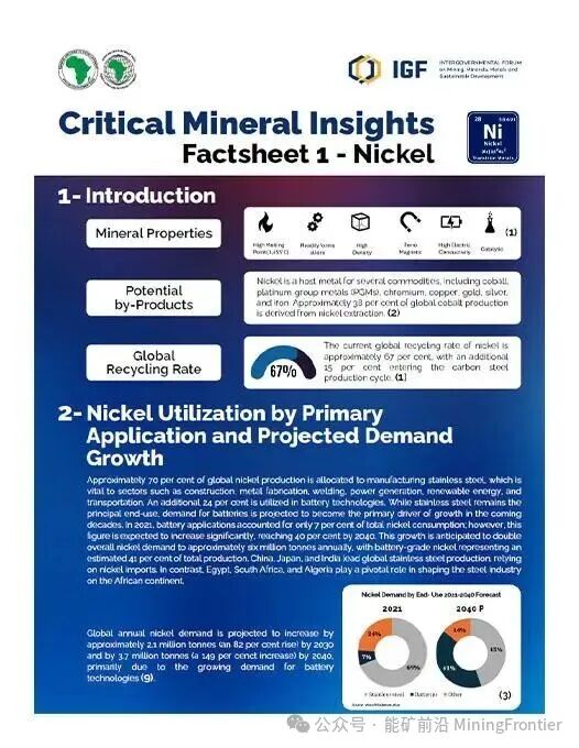 非洲豐富的礦產(chǎn)資源能夠推動(dòng)工業(yè)增長(zhǎng),但由于開采活動(dòng)占據(jù)主導(dǎo)地位,而增值活動(dòng)有限,其巨大潛力仍未得到充分開發(fā)。這些由非洲礦業(yè)論壇 (IGF) 和非洲開發(fā)銀行聯(lián)合編寫的出版物,深入分析了鎳、銅、鈷、鋰、鋁土礦、天然石墨、鐵礦石、錳、磷酸鹽、釩、鉑族元素和稀土元素等礦產(chǎn)資源。